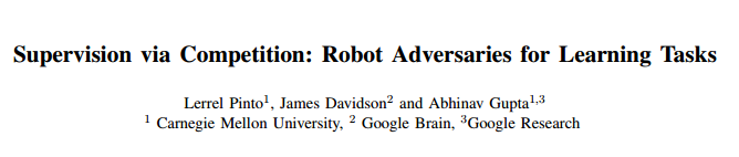 论文:Supervision via Competition: Robot Adversaries for Learning Tasks(通过竞争进行监督:有助学习任务的机器人对抗者)