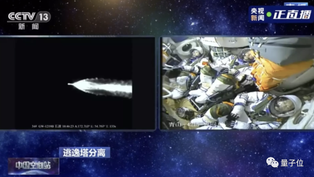 在发射约2分钟后,神舟十四号载人航天飞船迎来了逃逸塔分离阶段。