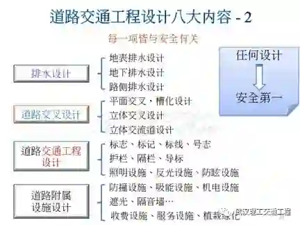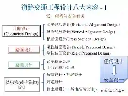 再来,从这个地方开始就是学交通工程必须要完整了解的。所以说在这之前八大项前面的五项,你要普通了解,概念性的了解,但是学交通工程就从这边开始到底下是要深入了解,了解吧。所以说我们把它合在一起叫做道路交通工程。