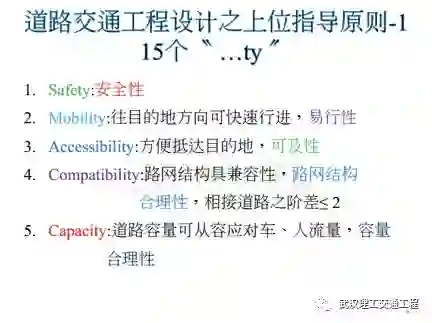 这个是我一辈子的经验,你看道路交通工程设计,你做设计的时候,它有一个上位计划,上位指导原则,这15个-ty就15个英文名词,英文的名词最后都是-ty,总共15个。