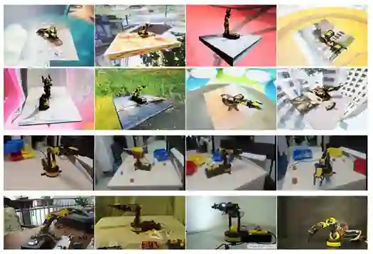 第三个数据集是 YouTube 数据集。我们爬取了 YouTube 中 OWI-535 机械臂的相关视频,并进行了手工标注,由于相机内外参数未知,因此我们只标注了二维关键点的位置。YouTube 数据集由 500 张左右图片构成,只用于测试。