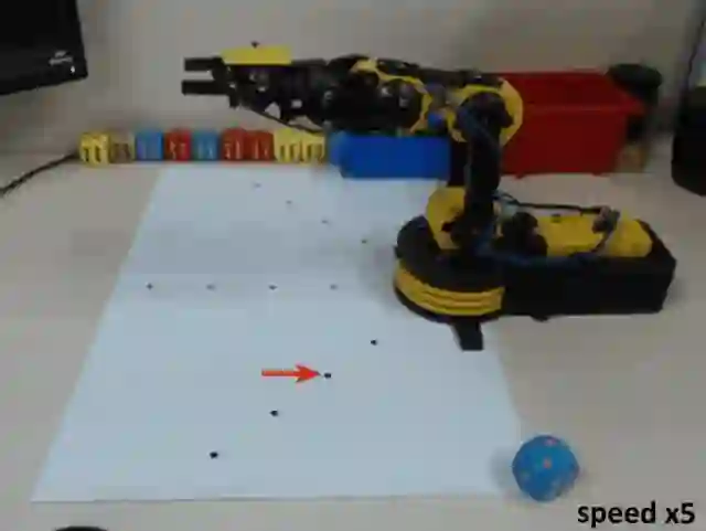 本文提出了一种基于视觉的机械臂控制系统,可以应用在价值 40 美元、完全没有传感器的廉价机械臂上。仅借助一个额外的摄像头,系统使用深度卷积神经网络,实时估计机械臂的三维姿态,并通过强化学习训练的智能体输出控制信号。进而,系统可以实现控制机械臂到达空间中任意给定三维坐标。基于此,我们还实现了自动抓取骰子的任务。此外,姿态估计和强化学习的训练完全依赖在虚拟环境中生成的数据,不需要人为进行标注与监督。