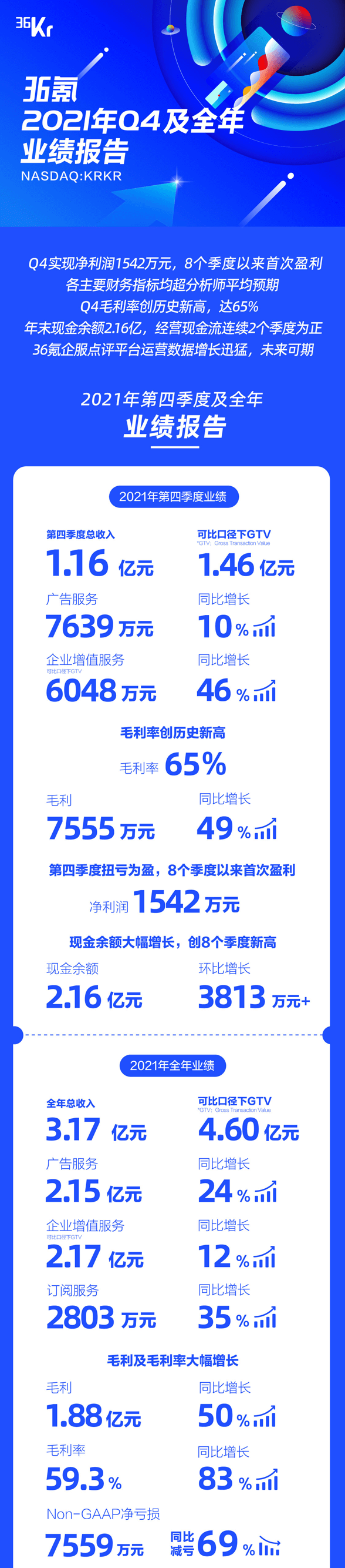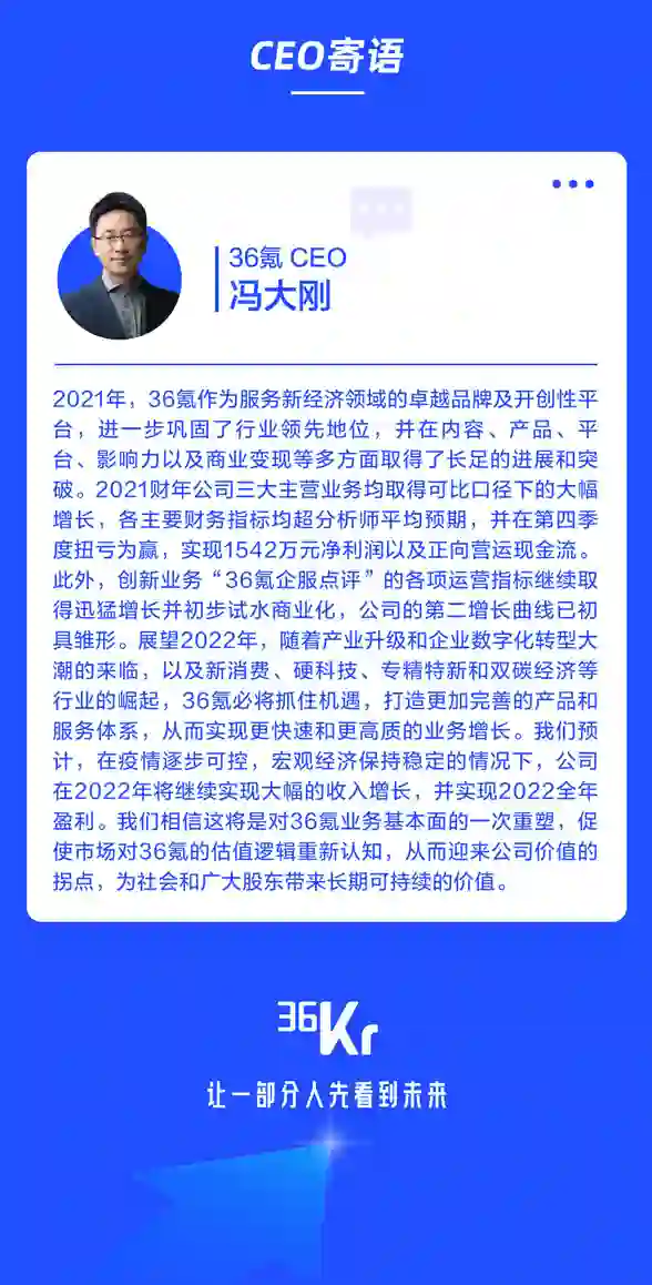 36氪21年Q4实现8个季度来首次盈利,业绩全面超预期