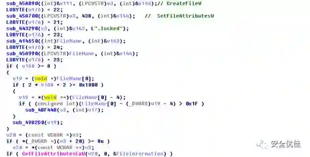 4、加密文件,在文件名称后追加“.locked",加密算法采用的是AES算法加密,AES的密钥是随机生成的,并且被RSA公钥加密后追加到了被加密的文件末尾处。