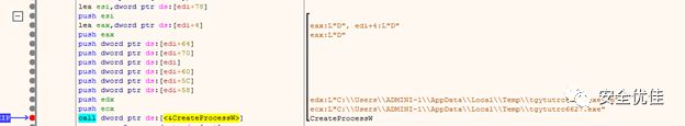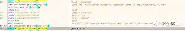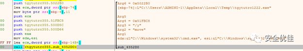 2、将病毒程序移动到C:\Users\Administrator\AppData\Local\Temp目录下,重命名后的名称是tgyturcXXXX.exe(XXXX为四个随机数字)。
