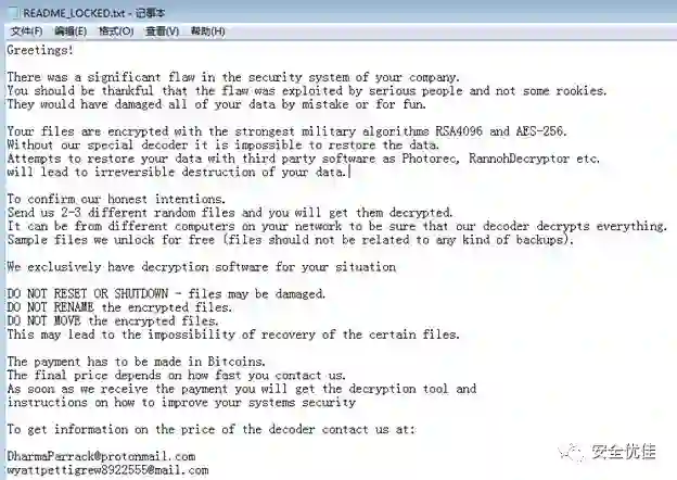 4、在桌面创建勒索信"README_LOCKED.txt"。