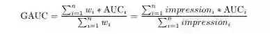 阿里在论文:Deep Interest Network for Click-Through Rate Prediction中提出了group auc来处理上述问题。公式如下: