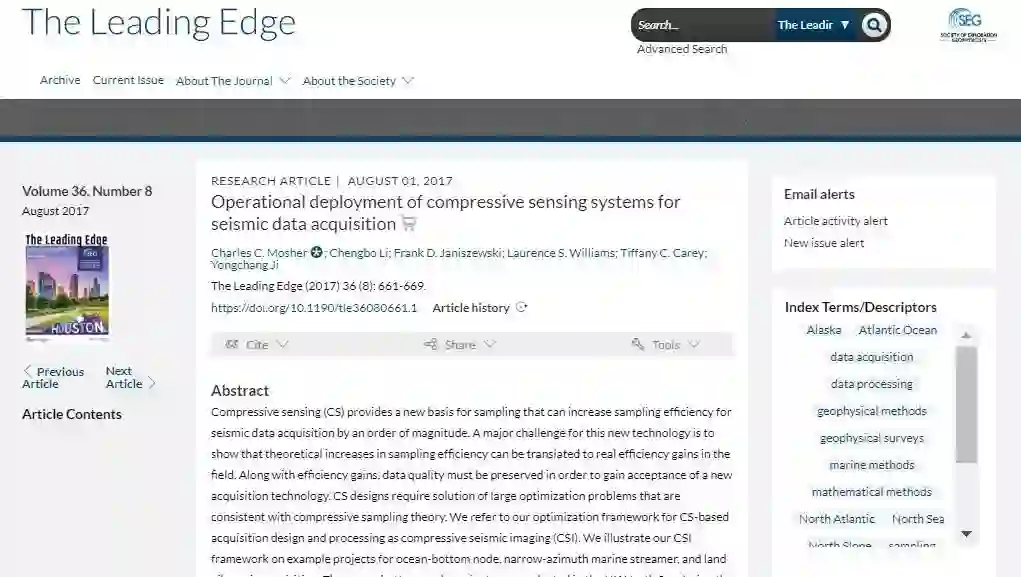 作为CSI技术的核心研发人员,李成博博士向《亲爱的数据》主编谭婧介绍了自己的求学与研究经历。2011年他从美国莱斯大学毕业,获得了计算和应用数学博士。毕业当年,他加入美国康菲石油公司,担任总部高级地球物理学家。他说,选择加入美国康菲石油,也是和开发压缩感知地震采集技术技术有关。