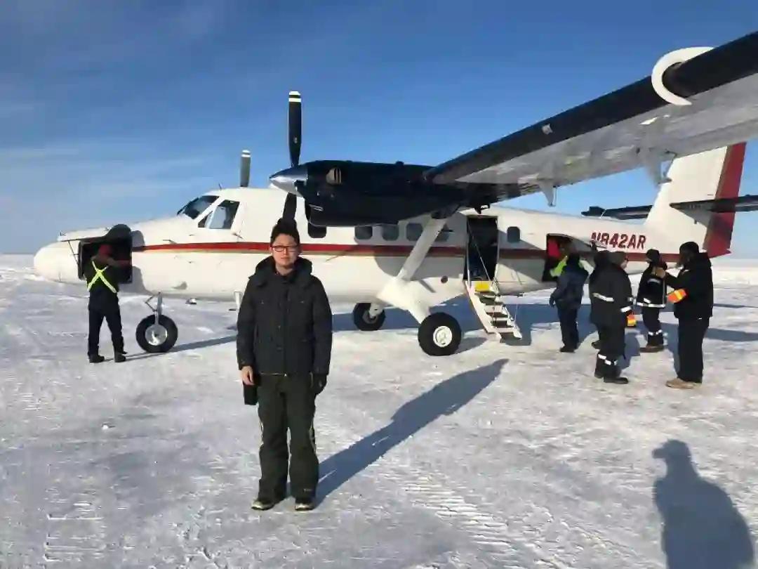 一架白色小型飞机穿过湍急的强风,在白皑皑的积雪中稳稳着陆。李成博博士欣赏着窗外熟悉的景色,冰封的世界,像极了他的老家中国东北。雪景怡人,但旅程却颇为周折,为了到达目的地,他需要顶风冒雪转飞机四次。最后一程还是小型螺旋桨飞机,因为它能在冰上直接降落。安全降落后,他才发现,着陆地点是在一个冰湖上。