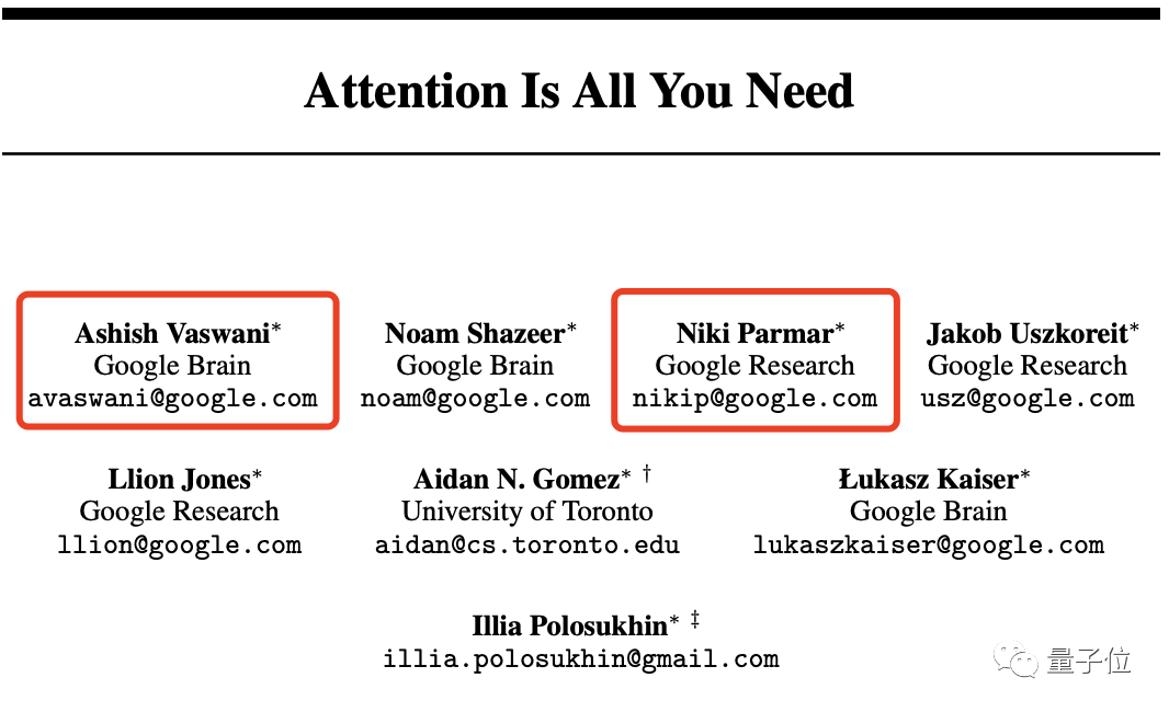 Ashish Vaswani和Niki Parmar两位作者在推特上的官宣证实了这一消息。