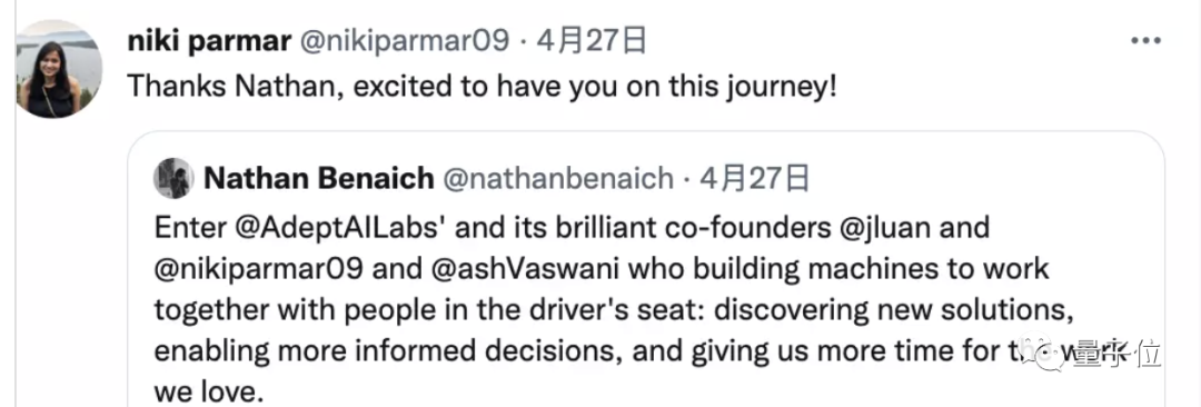 其实在Ashish Vaswani和Niki Parmar之前,已经有1位——Aidan N. Gomez也出来创业了。