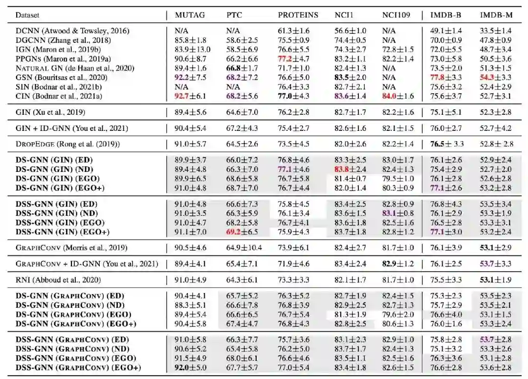 虽然文章展示了模型在图分类任务上取得了良好效果,但是作者仍然说明了一些欠缺的问题。比如,这个方法解决问题的主要思路还是增加了标准消息传递机制的计算复杂度。因此,在后续的工作中,作者提出了几点可以继续深入的方向:1)更好的子图选择策略,用来提高分类准确率;2)更高阶的子图表征方法,使得结构信息能更完善地被捕捉;3)对网络更理论的分析,尤其是不同子图选择方法和聚合函数的分析。
