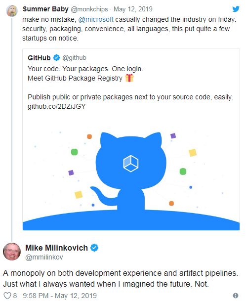 在收购了 GitHub 之后,微软也加大了对开源系统的支持力度,允许开发者为其服务添加新的功能。比如在今年的开发者大会(Build 2019)上,微软就发布了全新的开源 Windows 终端应用程序。随后不久,该公司又发布了兼容 npm、Maven、Maven、RubyGems、NuGet、以及 Docker 等包管理器的 GitHub Package Registry,方便开发者更加高效地进行管理。
