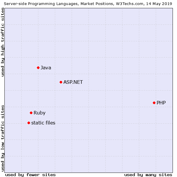 除了使用统计方面的数据,还有一个值得关注的点 —— 这些服务器端编程语言的市场地位如何?
