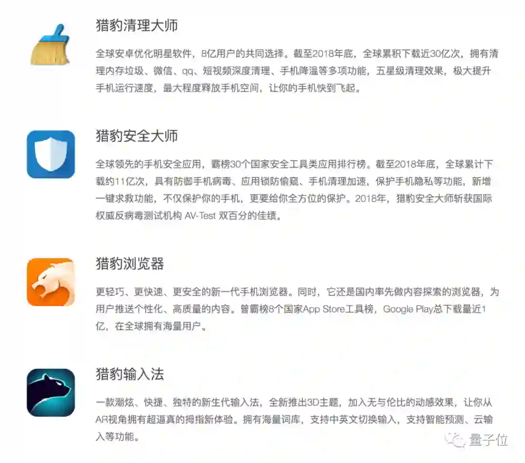 工具业务,对应到猎豹官网的业务展示页面上,就是这些App们: