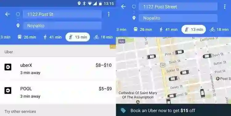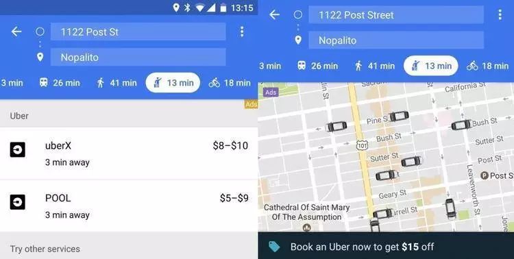 据 AndroidPolice 报道,Google 已经取消了在 Google 地图上直接预约优步的功能,取而代之的是需要跳转到优步 App 中。Google 对此并未作出回应。