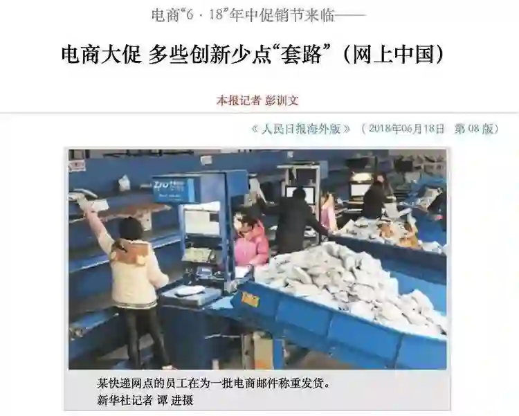 昨日人民日报海外版发文章《电商大促 多些创新少点「套路」》,文章中透露近日国家市场监督管理总局召开了「6·18」网络集中促销活动行政指导座谈会,要求网络交易平台(网站)经营者强化「第一责任人」意识,不得违背《网络购买商品七日无理由退货暂行办法》相关规定违法促销。不过从以往经验看,无论是政府部门召集电商座谈的效果还是相关法律规定的落实,实际情况都不尽如人意。