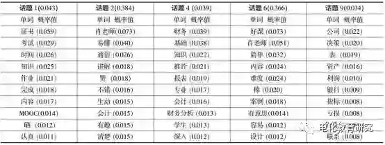 [Abstract] This study takes the course Financial Analysis and Decision-making of MOOC college in Guokr as the experimental subject to mine the learners' topics through analysis of course review posts. Firstly, the study adopts the quantitative method of high frequency words analysis to realize the overall understanding of the content of learners' course review. Then, the learning analysis is used to study the learners who have completed the course as well as learners who haven't completed it respectively. The unsupervised learning method LDA model is employed to automatically excavate and resolve the feature structure and semantic content of text review information, explores and tracks the trend of hot topics that learners are concerned about. The study results show that learners highly recognize and appreciate this course, and pay special attention to the course content as well as teachers' teaching forms. Compared to the completer, the learners who haven't completed the course tend to explain the main reasons for the unfinished course, express more negative topics and less professional theoretical knowledge of the course.