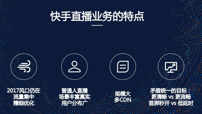 二是快手主要是面向普通人的直播,场景丰富真实,也带来一些问题,比如用户的网络情况非常复杂;