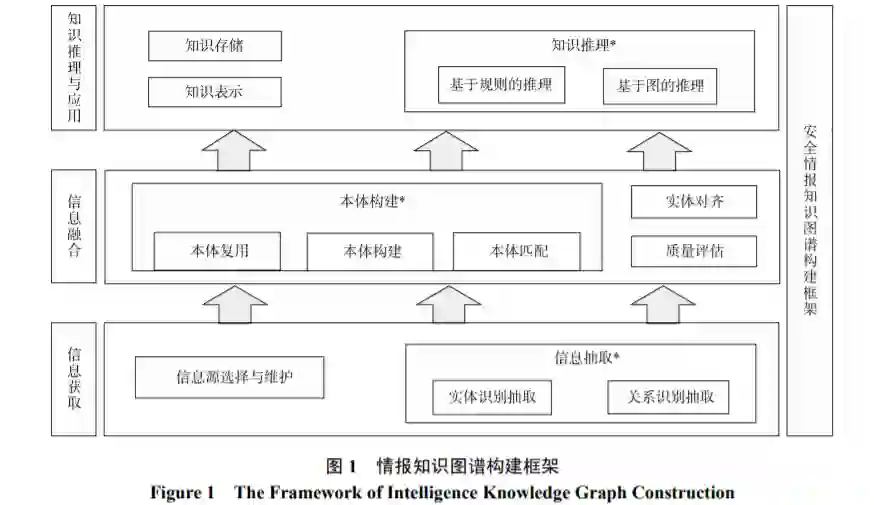 目前, 针对安全情报知识图谱的研究和应用仍 较少, 因此, 本文首先通过对知识图谱现有通用技 术以及在网络安全领域的应用进行调研总结, 归纳 出面向安全情报的知识图谱构建框架。然后, 对其关 键技术进行系统梳理, 旨在将知识图谱技术引入安 全情报领域。最后, 探讨知识图谱技术在安全情报研 究与应用中仍需解决的问题。