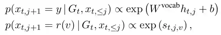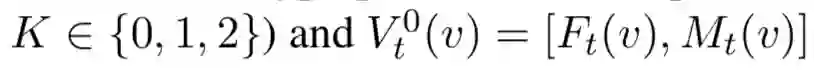 t 时刻知识图谱中每个节点的向量表示为 V_t(v),向量表示中包含了以下来源的信息:代理私有知识库的信息,共享的对话中的信息,来自知识库中相邻节点的信息。