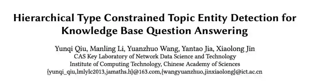 这篇文章,主要有两个主要工作:其一,是引入了层次结构的实体类型约束,来表达实体的语义,使得与问题上下文相关的实体,更容易被找到;其二,是建立了基于 LSTM 的 HTTED 模型,提高了主题实体识别的效果。