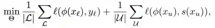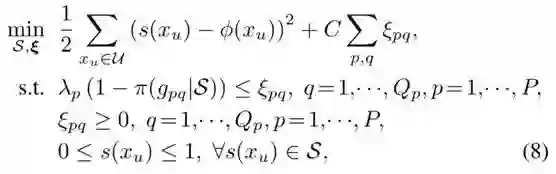 上式前半部分是对知识图谱中真实存在的三元组的约束,后半部分为对预测了标签的三元组的约束。