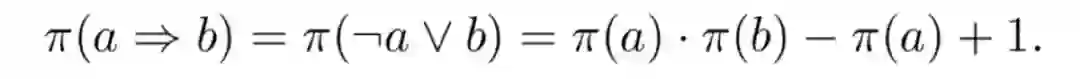 本文借鉴了模糊逻辑的核心思想,将规则的真值看作其组成部件真值的组合。例如一个已经实例化的规则 (e_u, e_s,e_v) =(e_u, e_t,e_v) 的真值将由 (e_u, e_s,e_v) 和 (e_u, e_t,e_v) 的真值决定。根据(Guo et al. 2016)的工作,不同逻辑算子的真值计算如下: