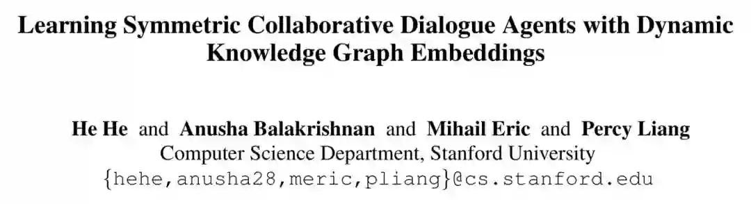 本文研究了对称合作对话(symmetric collaborative dialogue)任务,任务中,两个代理有着各自的先验知识,并通过有策略的交流来达到最终的目标。本文还产生了一个 11k 大小的对话数据集。