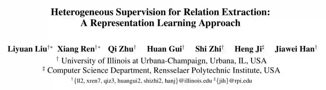 本文首次提出使用表示学习的方法为关系抽取提供异源监督,这种使用表示学习得到的高质量的上下文表示是真实标签发现和关系抽取的基础。