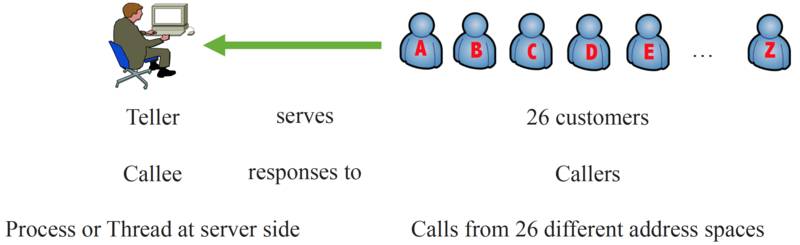 下图是使用 传统的阻塞 I/O 模型。一个柜员服务所有客户,可见当客户填写单据的时候也就是发生网络 I/O 的时候,柜员,也就是宝贵的线程或者进程就会被阻塞,白白浪费了 CPU 资源,无法服务后面的请求。