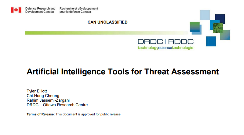 威胁评估对于维护国家安全利益和维护各国主权具有重要意义。空中威胁评估对于一个有大片国土需要保护的国家(例如加拿大)很有价值。人工智能和机器学习都可以应用于威胁评估的研究领域。通过学习构建人工智能驱动的工具,加拿大的国防和安全将通过获得持续的前沿研究得到改善。无论哪个国家开发出最有效和最可靠的威胁评估工具,在决策和威胁反应方面都将获得优势。通过利用前面提到的快速扩张的领域,加拿大可以获得决定性的优势。