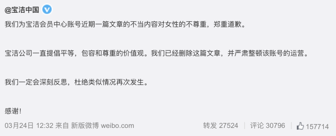 这个回应固然是公关动作,但与其形成鲜明对比的是,同样在“她经济”风口起飞、靠女性消费者供养的品牌,却连此份自觉都没有,一边大口吃饭,另一边放手砸锅。