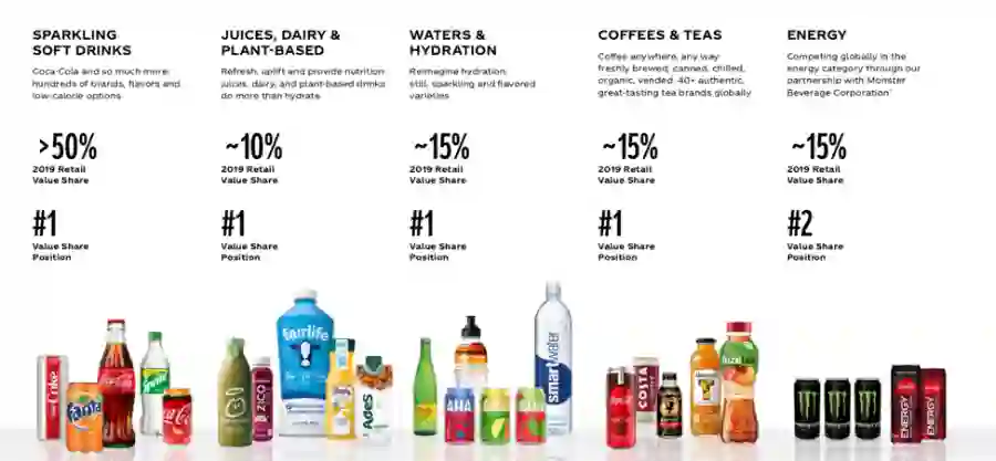 可口可乐2019年的年报显示,碳酸饮料的销售份额在50%以上