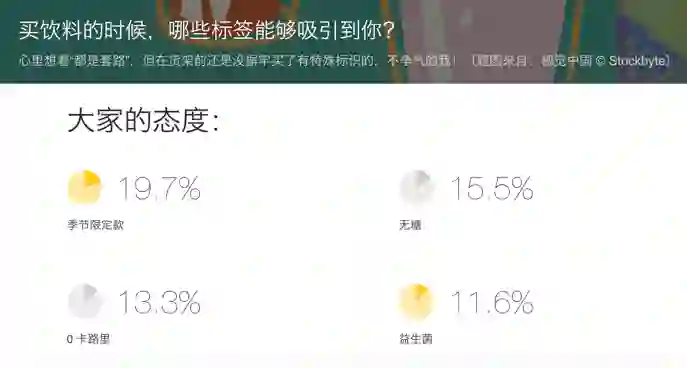 15.5%的参与者认为无糖饮料更吸引自己,这仅次于季节限定。图源:好奇心日报