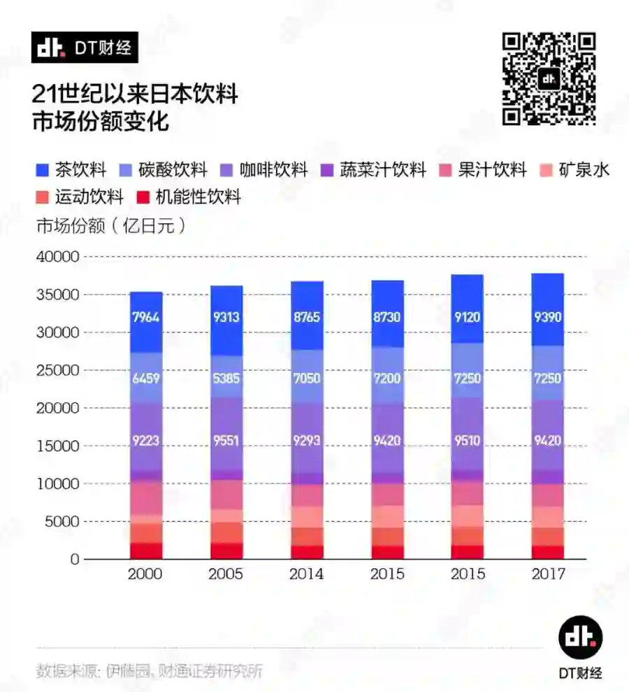如今,代表健康的茶饮料市场十分活跃,特别在有饮茶习惯的国家。日本饮料巨头伊藤园在2017年财报中指出,茶饮料当时的份额超过9390亿日元(约合610亿元人民币)。