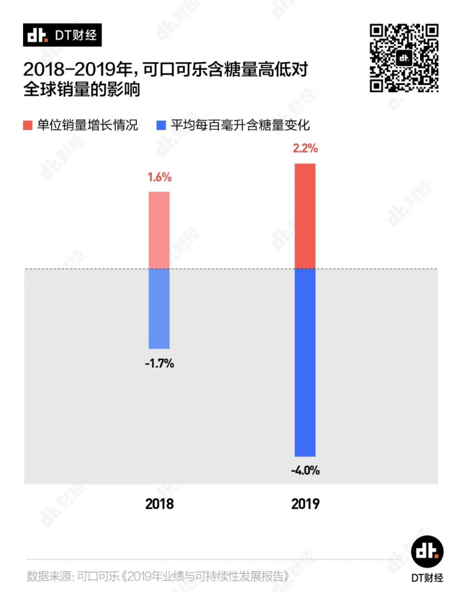 这种低糖、无糖的策略是成功的。2018财年和2019财年,可口可乐碳酸饮料的含糖量分别降低1.7%和4.0%,销量相应增长了1.6%和2.2%。