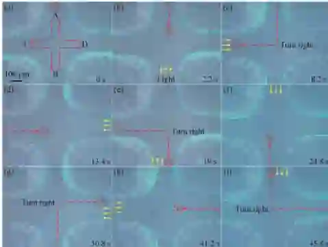 图1 藻类细胞机器人在微流控管道十字路口“右转”运动
