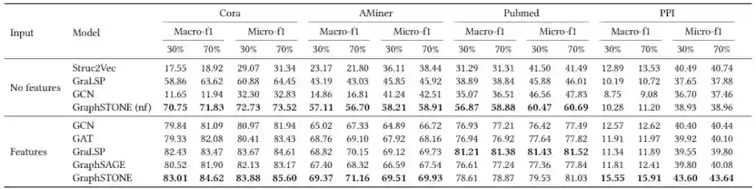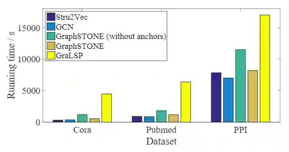 此外,GraphSTONE 运行效率高,所需时间与 GCN 相近(图5)。