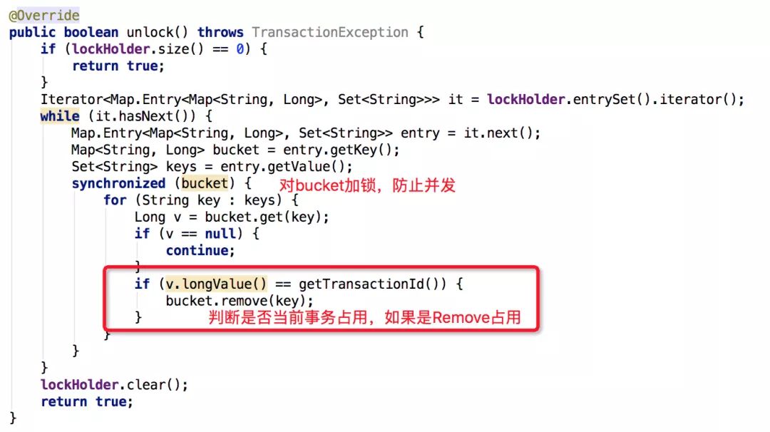 如上图注释,整个acquireLock逻辑还是很清晰的,对于分支事务需要的锁资源,要么是一次性全部成功获取,要么全部失败,不存在部分成功部分失败的情况。通过上面的解释,可能会有两个疑问: