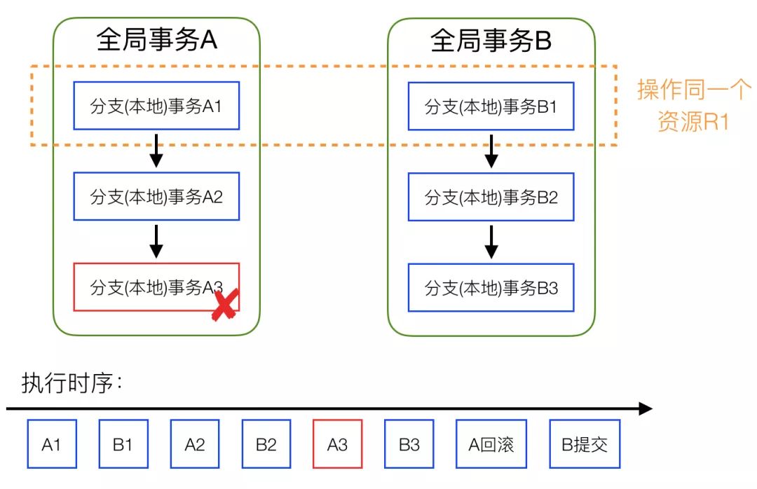 全局事务的隔离性是建立在分支事务的本地隔离级别基础之上的。