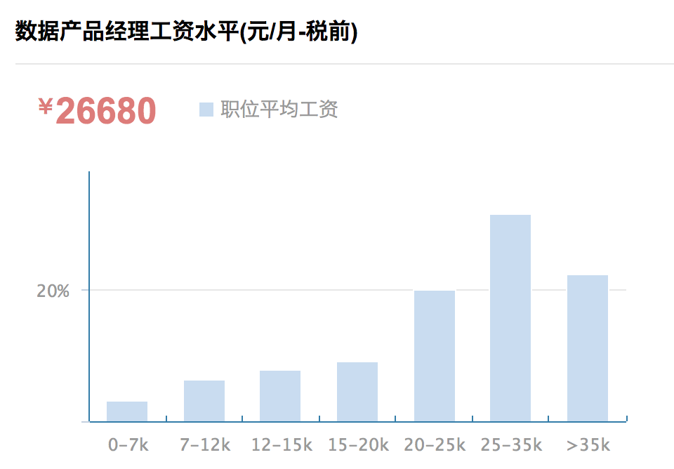由于这个岗位的重要性,使得其薪资待遇比大多数职业要高上不少。(如下图感受一下数据产品经理的薪资水平)