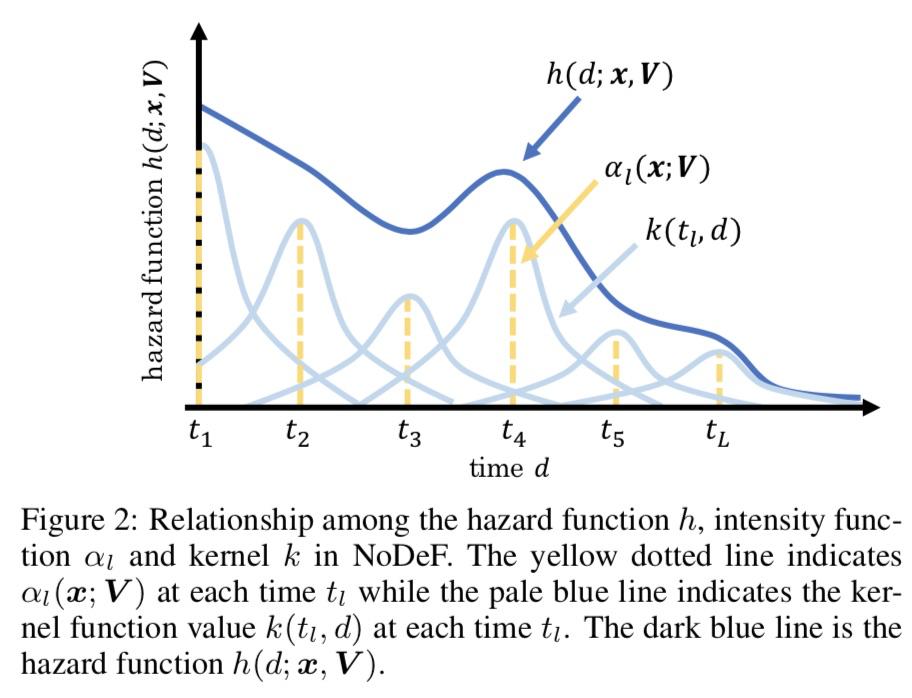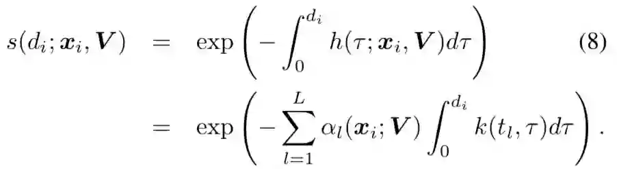 风险函数(hazard function) f(t):对每个d拆解为L等份,建立L个虚拟时间片,并借鉴KDE思想通过核函数来拟合f(t),如下: