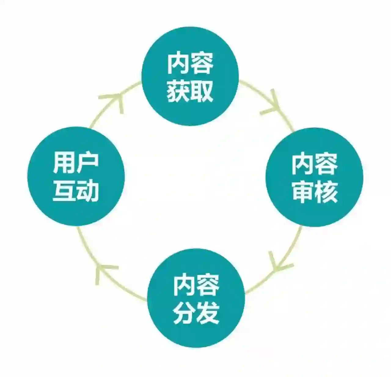 如上图:从一百万年前人类诞生开始,传播就由以上四个环节组成——内容获取(生产)、内容审核、内容分发,以及用户互动。直到今天,这四个环节没有发生任何变化,但就在最近2—3年里,每一个环节的内涵发生了本质变化,特别是在内容生产和内容分发环节。比如,在门户时代,我们强调的是海量和快速;而在今天,我们更强调丰富与精准。