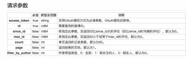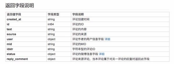 所有关于单条微博的评论信息都在 r.comments 中了,这里需要对照微博 API 文档,微博 API 有声明调用微博评论 API 需要获取用户授权。