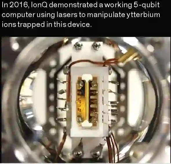 图5:2016年IonQ演示一个可以工作的5量子位计算机,用激光处理设备中的镱离子阱。