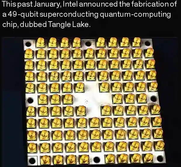 图4:去年一月,INTEL宣布制造出49量子位的超导量子计算处理器,被称为Tangle lake。