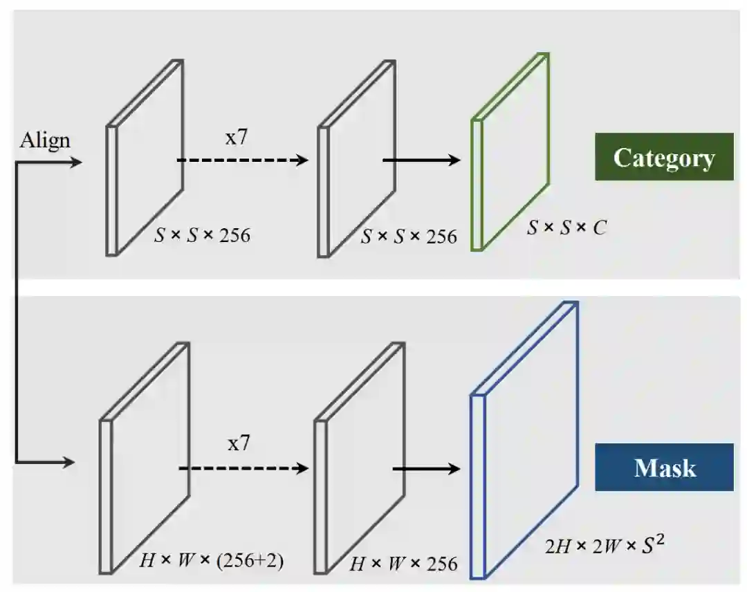 Abstract:我们提出了一种新的简单方法来对图像中的实例进行分割。与许多其他密集的预测任务(例如语义分割)相比,任意数量的实例使实例分割更具挑战性。为了预测每个实例的 Mask,主流方法要么遵循“Mask R-CNN”所使用的“检测后分割(detect-then-segment)”策略,要么先预测类别 masks,然后使用聚类方法将像素分组为单个实例。我们通过引入“实例类别(instance categories)”的概念以全新的视角解决实例分割的任务,根据实例的位置和大小为实例中的每个像素分配类别,从而将实例 mask 分割很好地转换为可分类的类别问题。现在,实例分割被分解为两个分类任务。我们展示了一个简单且灵活的实例分割框架,具有强大的性能,可达到Mask R-CNN同等的准确性,并且在准确性方面优于最近的singleshot实例分割算法。我们希望这个非常简单而强大的框架可以作为实例分割以外的许多实例级识别任务的基准。