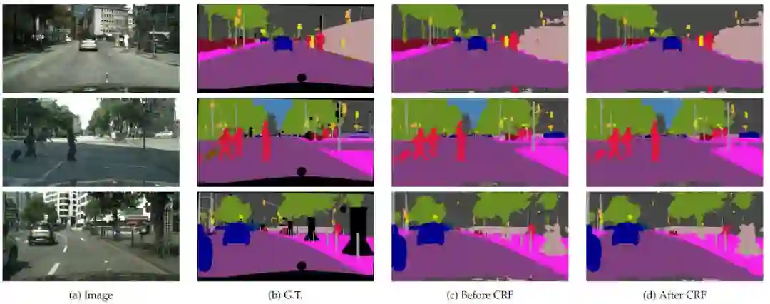 但是,CRF是一个后阶段的处理过程,它使DeepLabv1和DeepLabv2变为不是端到端的学习框架。并且它是不在DeepLabv3和DeepLabv3 +中使用。