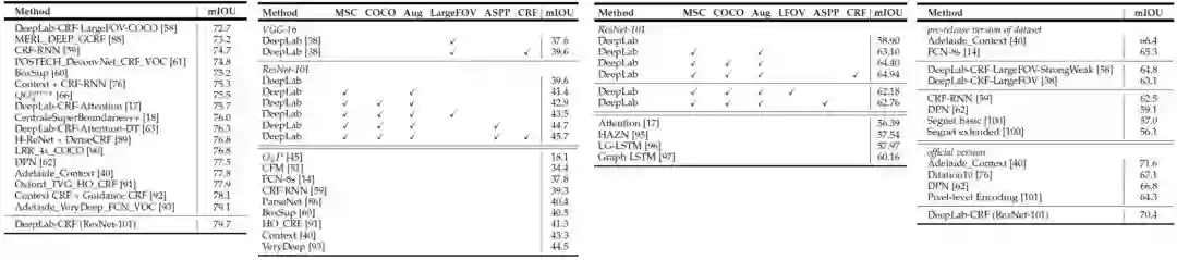 PASCAL VOC 2012测试集(最左侧)PASCAL-Context(左二)PASCAL-Person-Part(右二)Cityscape(最右侧)